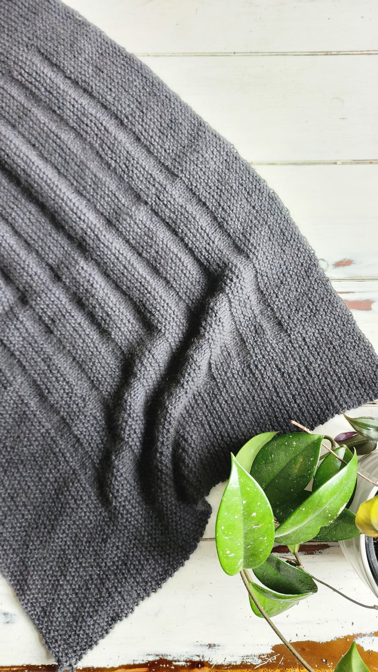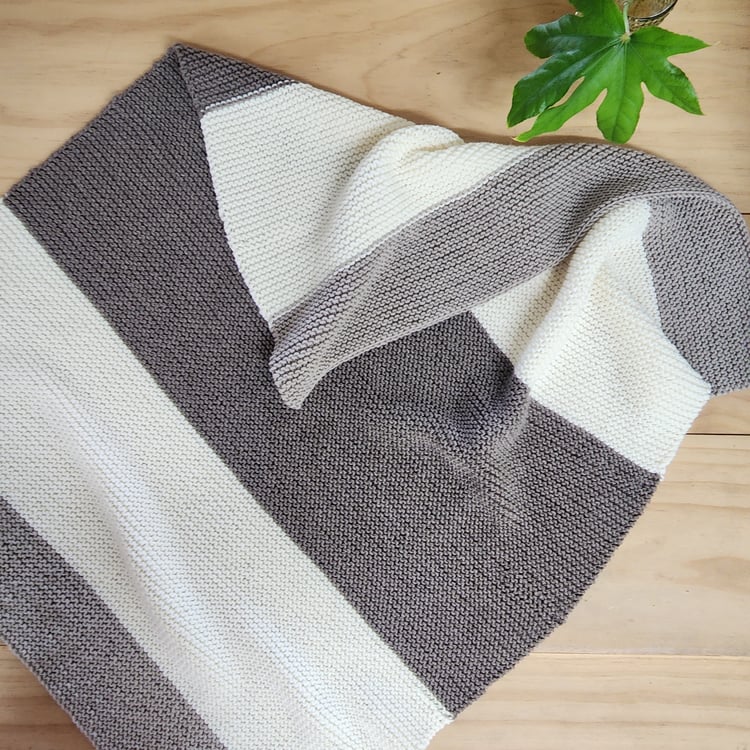This blanket is knitted on larger needles making a quick knit with luxurious drape.